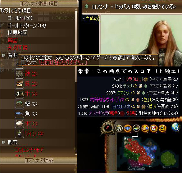 その後防衛協定や共同戦線をしていないターンが増えると一時的に同盟が結べなくなる事がある。